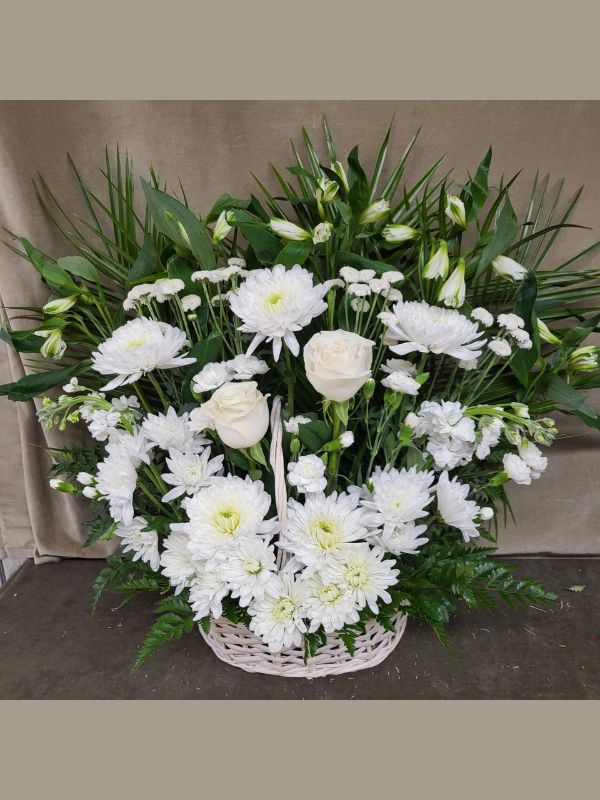 All White Flowers Sympathy Basket